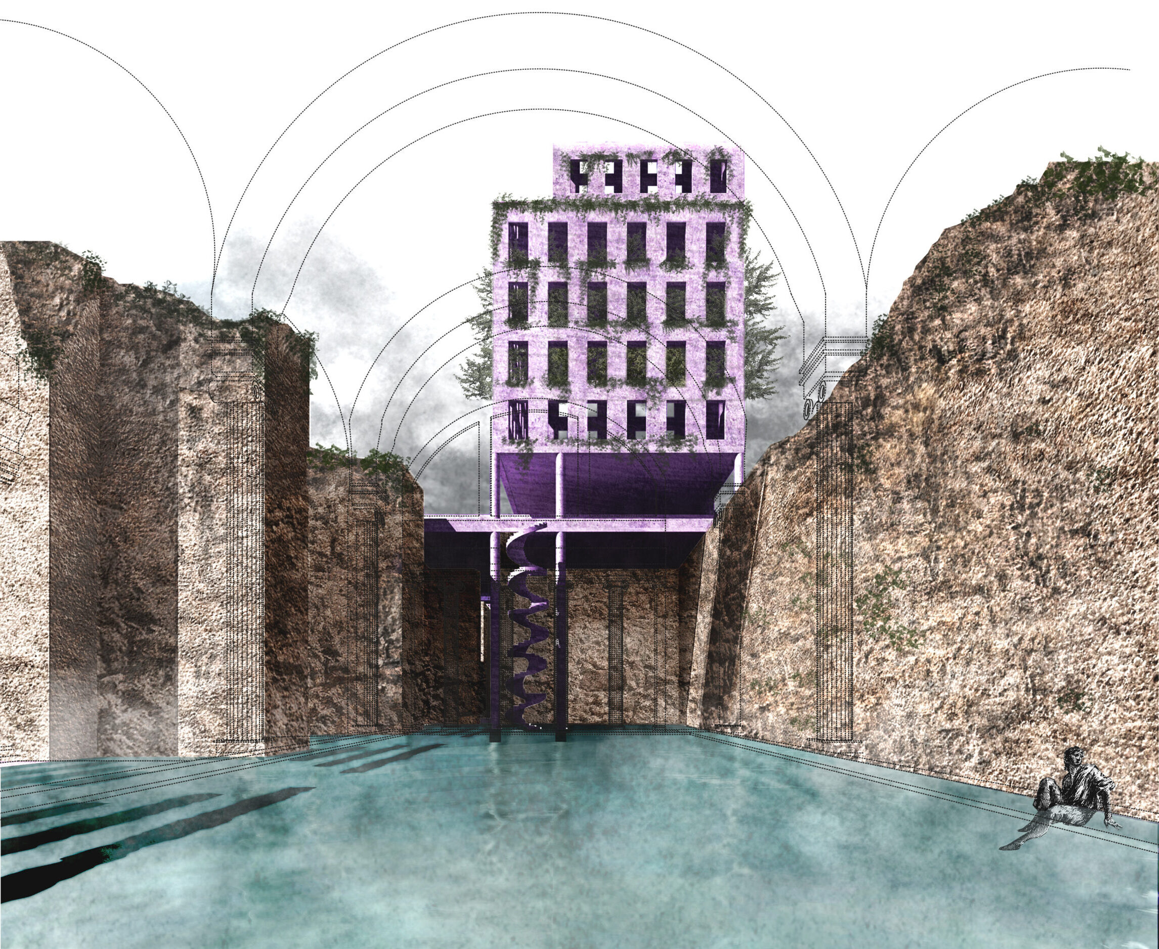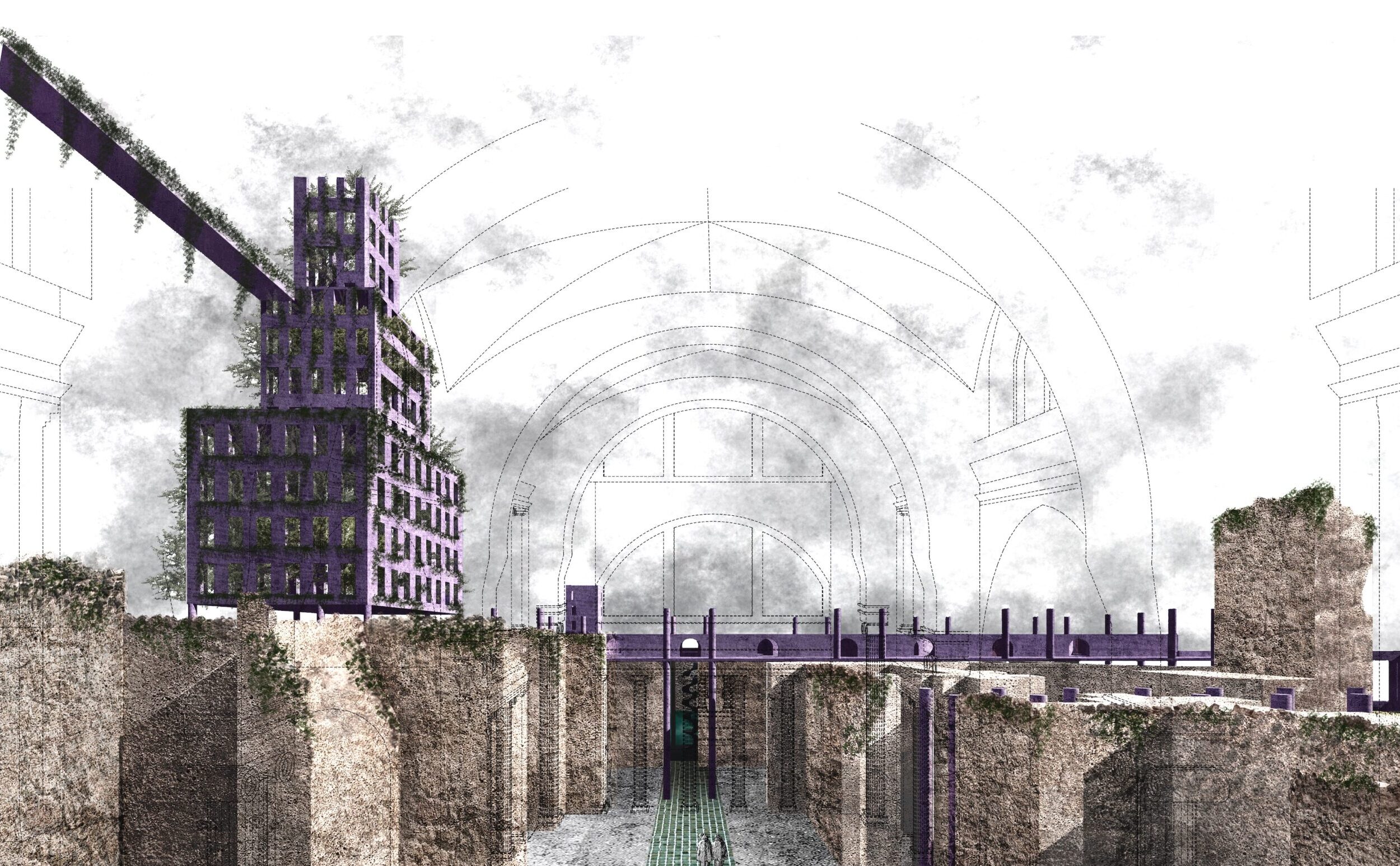 Central Rome remains an iconic tourist destination, yet most Romans live in the peripheral housing districts. Originating from the modernist projects of the Fascist era, known as the borgate, these new housing districts reflect the long-lasting effects of urban segregation, further exacerbated by the loss of collective memory. Consequently, Romeโs architectural strata appear suspended in time and space, lacking an ethos, and are unsustainable and uninspiring for architectural and political imagination. Instaurautio Urbis III aims to establish a dialogue of superimpositions between different kinds of ruins in the city: the ancient Roman ruins and the borgate as the cityโs โmodern ruinsโ. The modern stratum interrogates and emulates the ancient, rendering the two as parallel, if not equal, strands of Romeโs heritage.