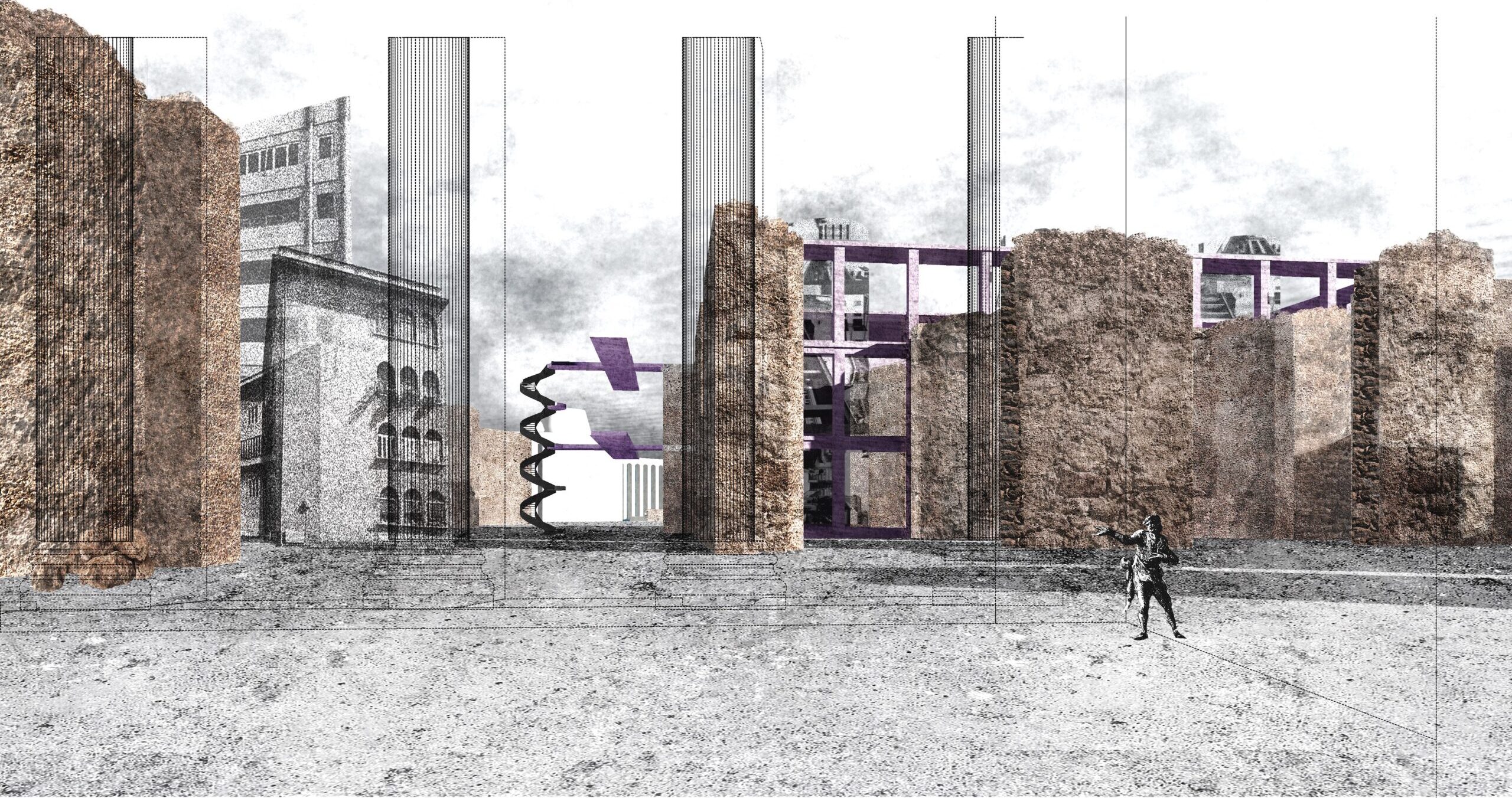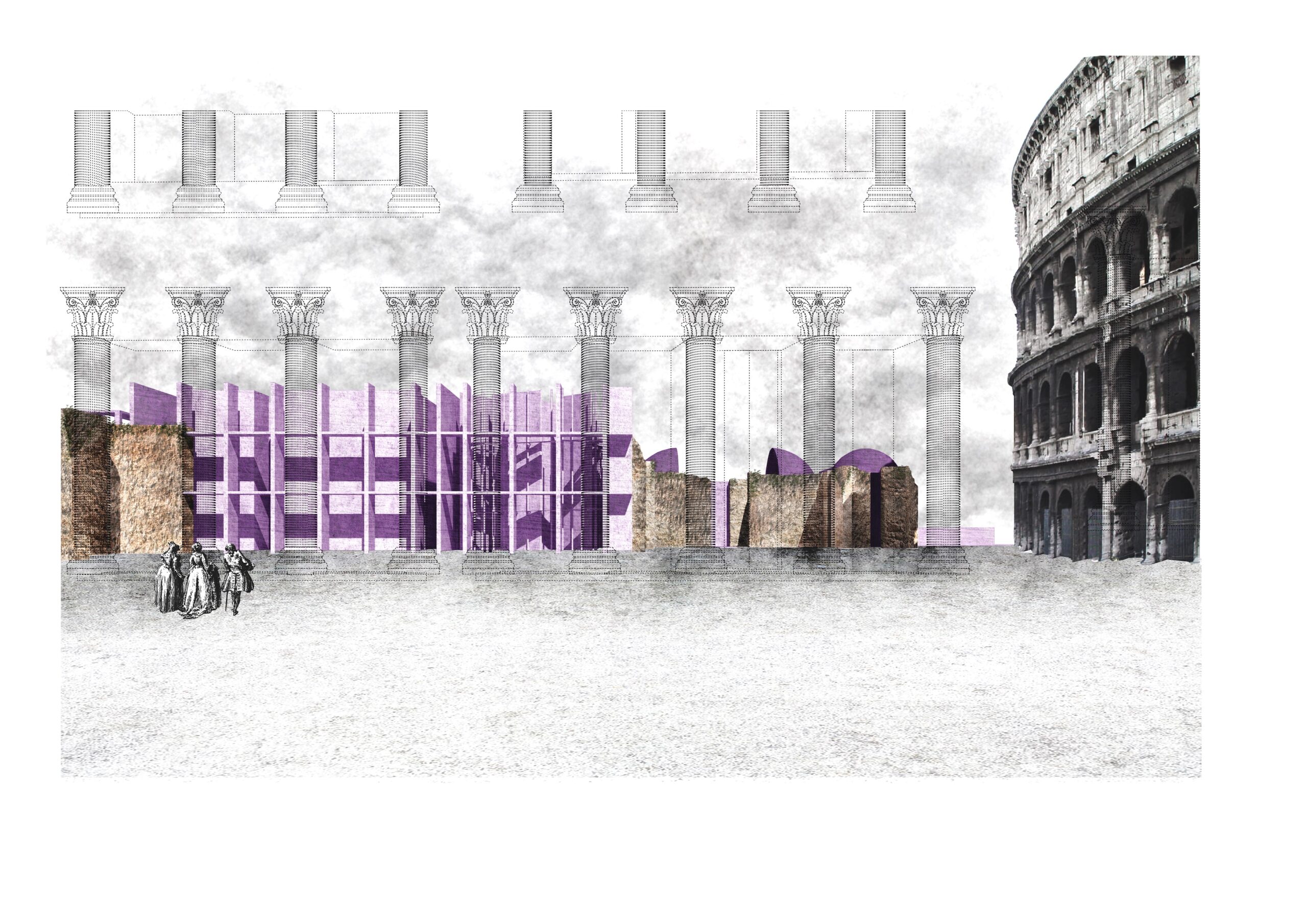The ancient Roman ruins emerge as the architectural base, the founding temporal stratum. In contrast, thanks to their inherent social and political effect on the city, the borgate become the controversial and forgotten โpara-monumentsโ that emulate classical styles and question the future social and cultural topography of the metropolis. The proposal thus interrogates: โCould the borgate become Romeโs new heritage?โ